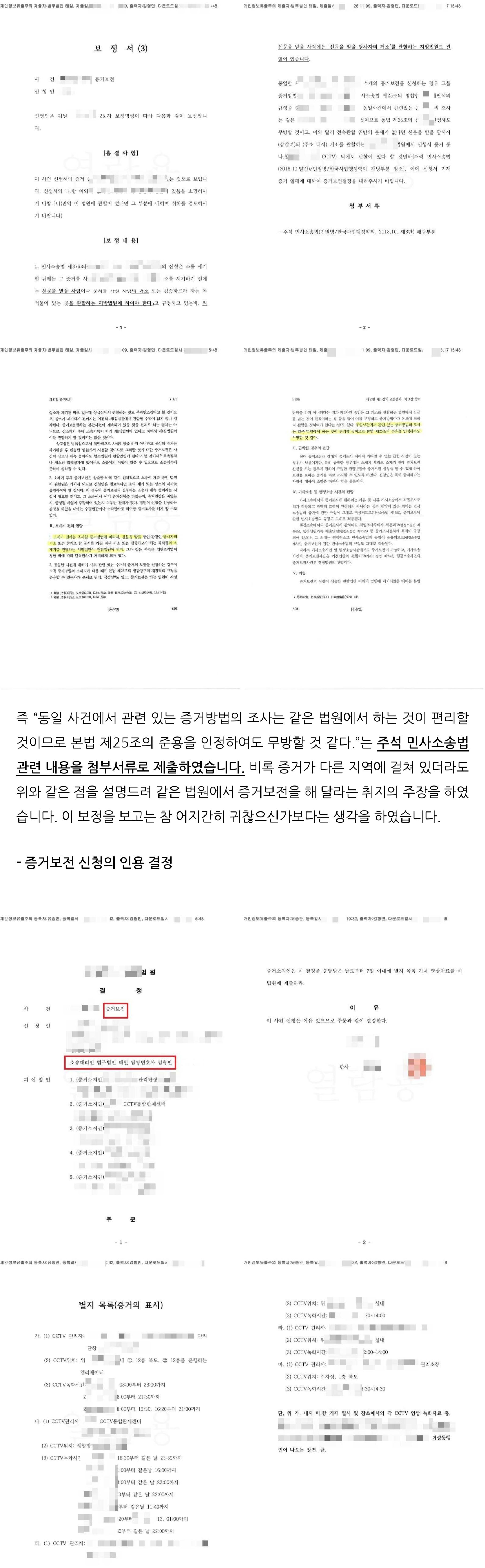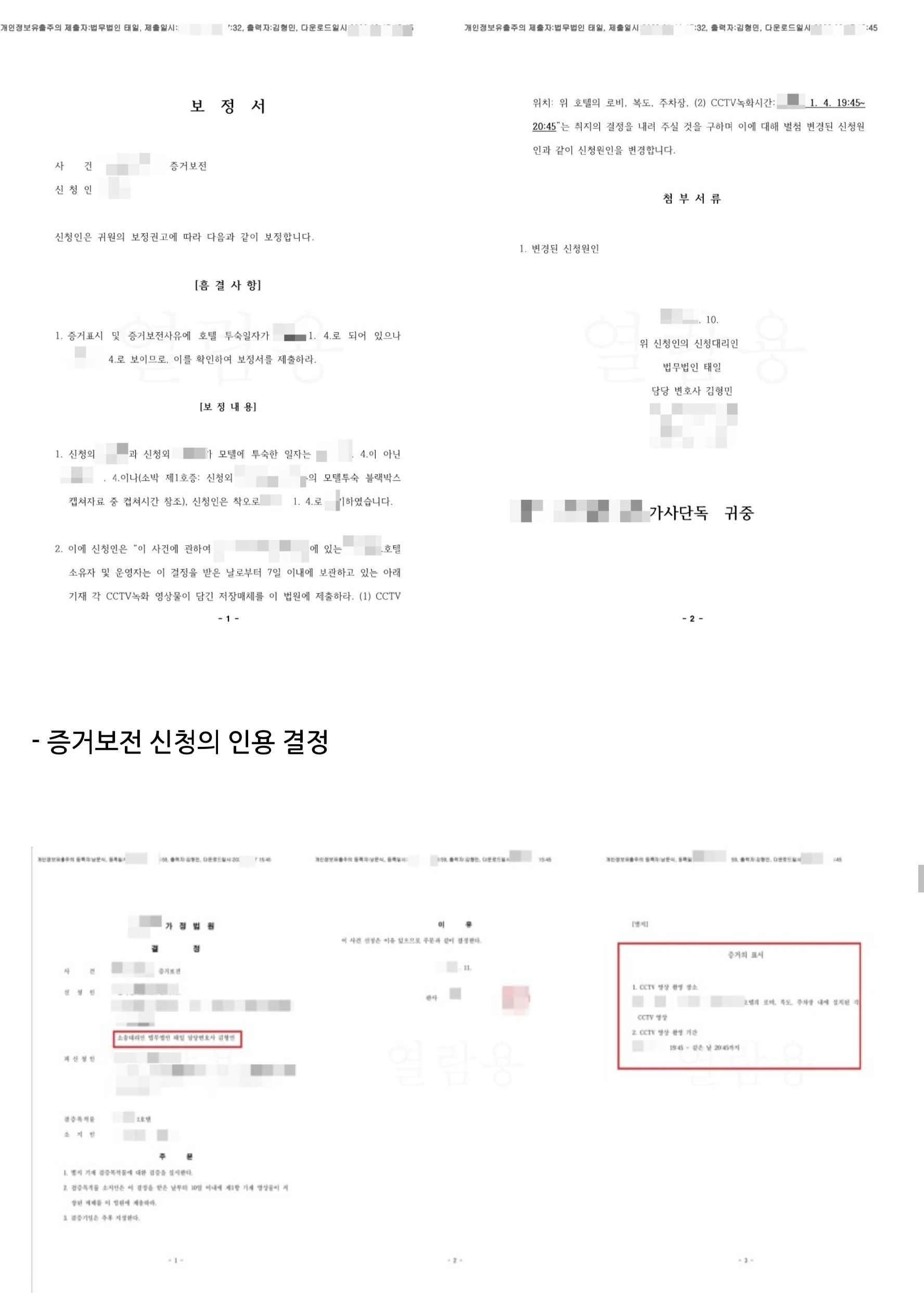 위와 같은 과정을 거쳐 비록 증거보전할 관할 지역이 다르더라도 취하할 것이 아니라는 주장을 하였고 결국 신청한 모든 CCTV에 관한 증거보전 인용 결정을 받았습니다.