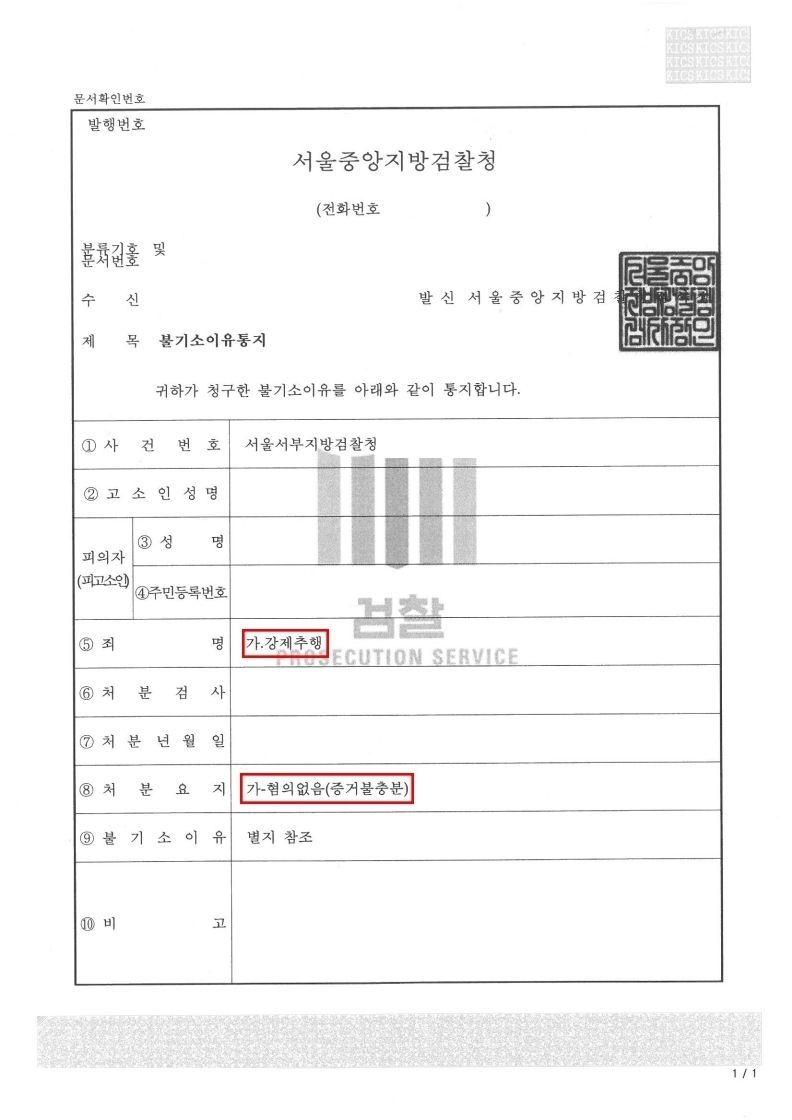검사는 변호인의 의견을 받아들여 피해자의 진술만으로 의뢰인이 피해자를 강제로 추행했다고 단정하기 어렵다고 판단하여 불기소처분을 하였습니다