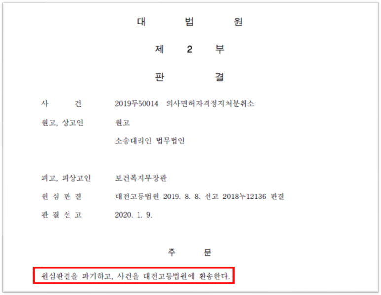 대법원은 이상과 같은 취지에서, 의사인 원고가 의료기관에 없는 상태에서 기존에 진료를 받아오던 환자가 내원하자 간호조무사가 원고에게 전화하여 원고로부터 전에 처방받은 내용과 같이 처방을 하라는 지시를 받았고, 이에 따라 간호조무사가 처방전을 출력하여 환자에게 교부한 사안에서, 그 처방전의 내용은 간호조무사가 아니라 의사인 원고가 결정한 것으로 보아야 한다는 이유로 무면허의료행위가 문제 되는 것은 아니라고 판단하였습니다.