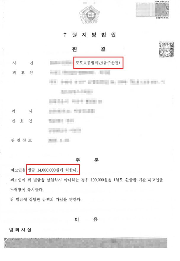 이제 재판부는 의뢰인이 세 번째로 음주운전으로 적발이 되었지만 벌금형이라는 비교적 가벼운 처벌을 받아낼 수 있었습니다.