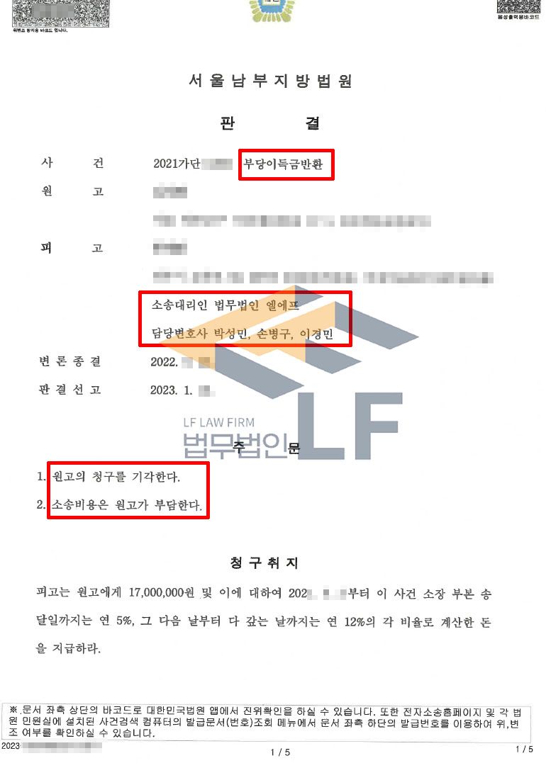 의뢰인은 자신도 금을 보이스피싱 일당에게 실제로 건네주어 피해가 있는 상황에서 이 사건 부당이득반환청구소송까지 당하게 되어 매우 불안한 마음이었고, 이에 더하여 돈을 이체한 명의자가 의뢰인에 대하여 과실에 의한 방조에 따른 불법행위책임도 주장하고 있는 상황이었습니다.