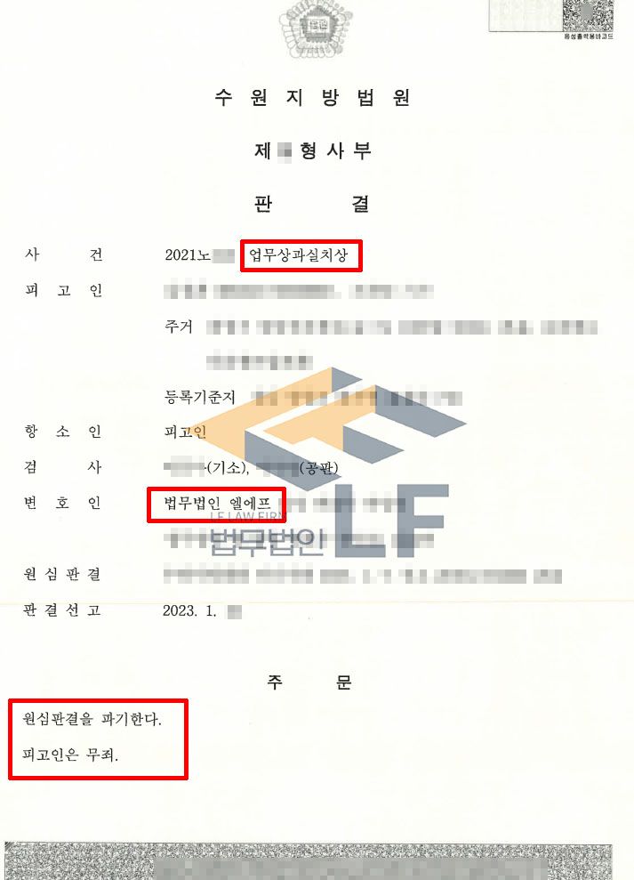 의뢰인은 수사단계를 거쳐 1심에서 까지 이미 업무상과실치상죄로 유죄판결을 받은 상황이였기 때문에, 2심에서 새로운 사실을 밝혀내지 않는 이상 1심의 유죄판결이 그대로 선고되어 억울한 누명을 피할 수 없는 상황이었습니다.