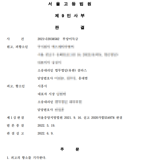 상식적으로 오직 합필이라는 형식적 행위를 위해 소유권을 이전받기 위해서 10억이 넘는 거액을 상대방 지자체에 지급하는 것은 말이 되지 않으므로, 의뢰인은 주택사업 종료 후 상대방 지자체에 위 매매대금에 대한 부당이득 반환청구를 하였습니다. 1심에서 의뢰인이 승소하였으나, 1심 판결문의 법리가 명확하지 않아 상대방 지자체가 이를 문제삼으며 항소를 제기하였습니다.