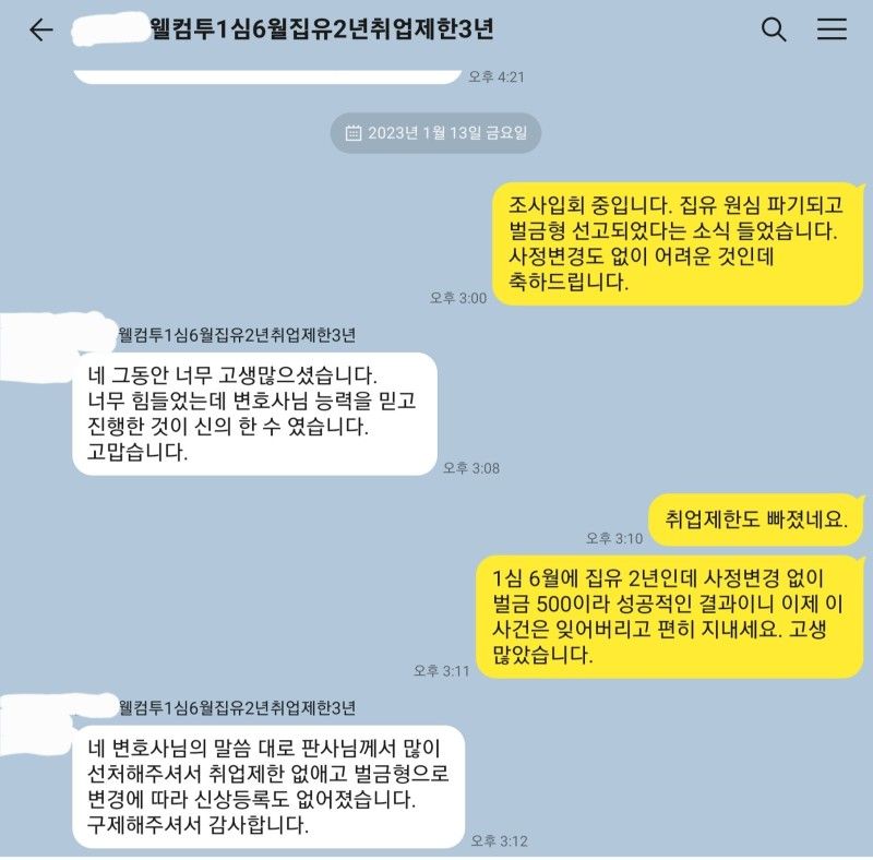 위와 같은 성착취물소지죄 사안은 '고민하는 것 같은데 저 선임하지 않고 다른 변호사 선임하든 말든 자기 선택이니 한 번 해봐라, 전관이든 대형로펌이든 저 사안을 꿰뚫고 있지 않는 이상 되는지'라는 생각이 있는 것도 사실입니다. 반면 통매음의 경우 십중팔구는 무혐의가 가능한 쉬운 사안의 경우 혼자서 대응해서 무혐의가 나오는 경우도 다수 있고 저를 선임하지 않으면 반드시 처벌되는 상황이라 말을 한 적도 없고 그렇게 생각하지도 않습니다. 다만 제 변호와 의견서에는 자신이 있고 누구보다 차이 나게 높은 확률로 무혐의를 받을 수 있다는 생각이 있기는 합니다. 카톡으로만 대화를 하였기 때문에 다시 봐도 없고 제가 그런 말을 할 리도 없습니다. 마치 혼자서 하면 반드시 처벌된다고 기망을 했고 제 사기에 당하지 않았다고 생각하는 사람도 있는데 제가 언급한 적도 있지만 상담자 중에 가장 양아치가 많은 유형이 통매음입니다.
