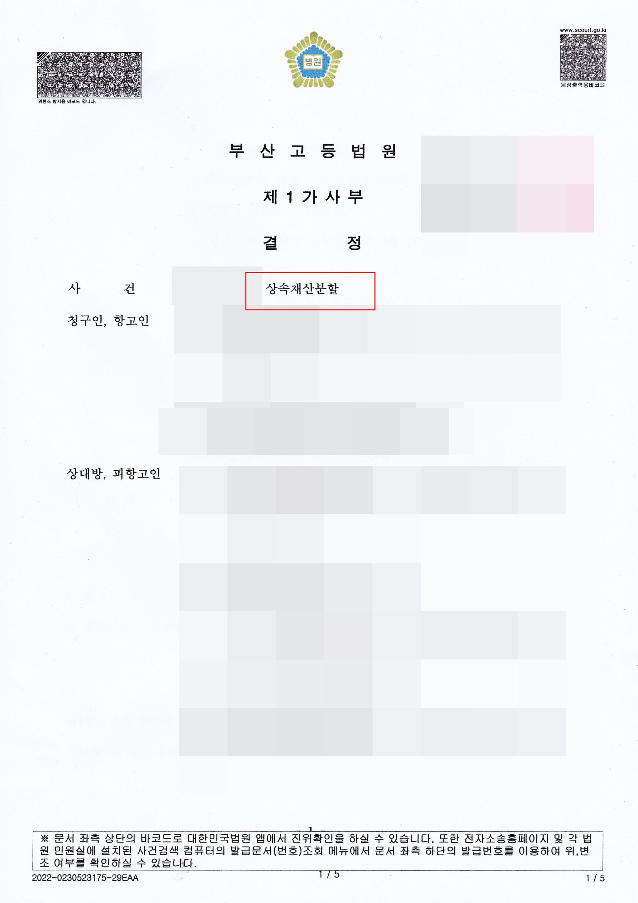 기여분 및 상속재산분할심판 청구 사건의 상대방들을 대리하여 승소한 사례를 간략히 소개합니다.