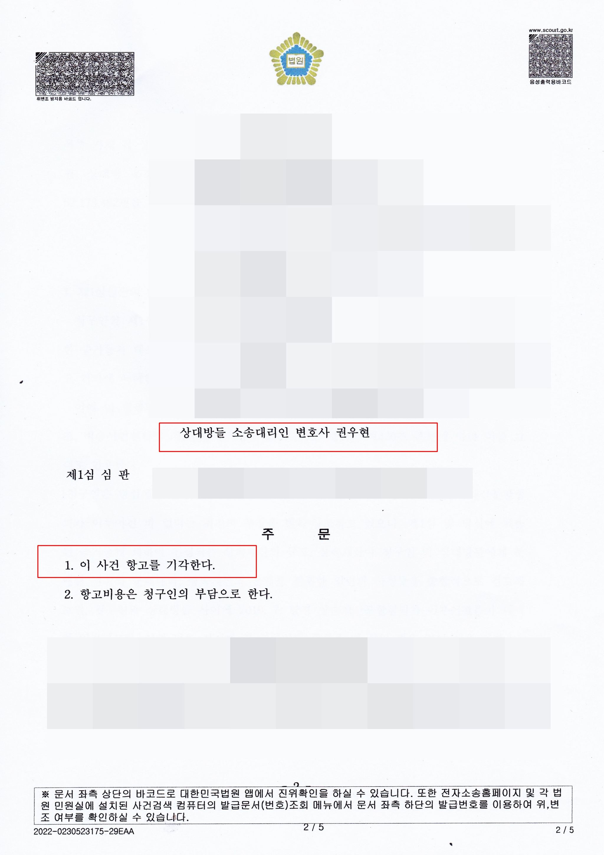 각하 판결을 받은 청구인은 1심과는 달리 주장을 잘 정리하여 항고하였으나, 항고심은 상대방들 소송대리인의 구체적이고 상세한 분할협의 설명을 받아들여, 원심 각하가 정당하다는 이유에서 항고기각 선고를 하였고, 쌍방 재항고 없어 확정됨