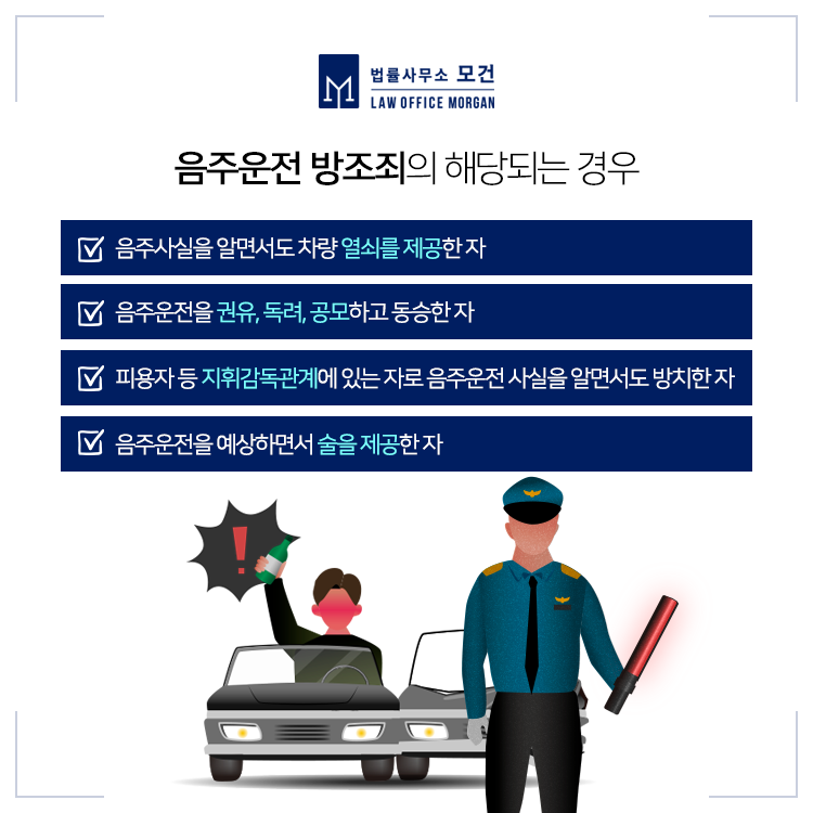직접 음주운전을 한 것보다 방조죄는 그 처벌기준이 낮지만, 개인의 상황에 따라 형사처벌 자체가 큰 불이익으로 작용할 수도 있어 각별한 주의를 요하는데요. 예를들어 본인이 공무원이라면 금고형 이상의 형사처벌은 내부 징계로 이어지는 만큼 음주운전방조죄도 쉽게 간과해서는 안됩니다.