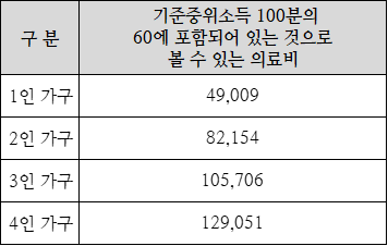 2. 인정범위 : 추가 생계비로 인정 가능한 의료비는 아래의 표(단위 : 원)에 기재된 액수를 초과하는 의료비 지출임