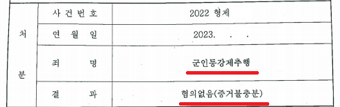 수사기관은 본 변호인의 주장을 받아들여 의뢰인에 대한 군인등강제추행의 점에 대하여 '혐의없음' 처분을 하였습니다.