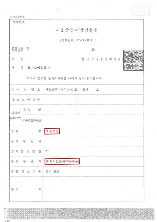 수사기관은 오랜 보완 수사 결과, 의뢰인 진술의 신빙성과 증거관계에 대한 본 변호인의 변론 및 의견서를 그대로 수긍하였고, 이에 의뢰인에 대한 준강간 혐의 사건에 대해 혐의없음 처분을 하였습니다.