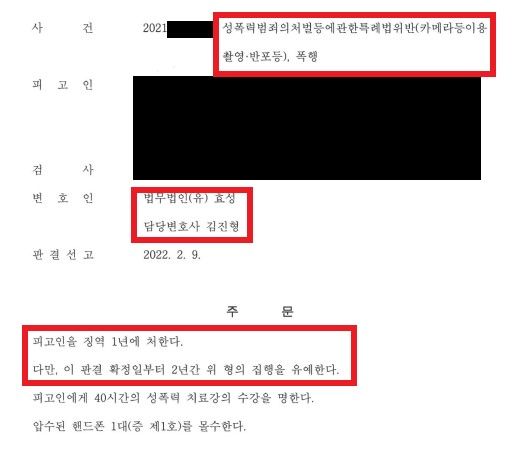 카메라등이용촬영,폭행 집행유예 받았습니다.