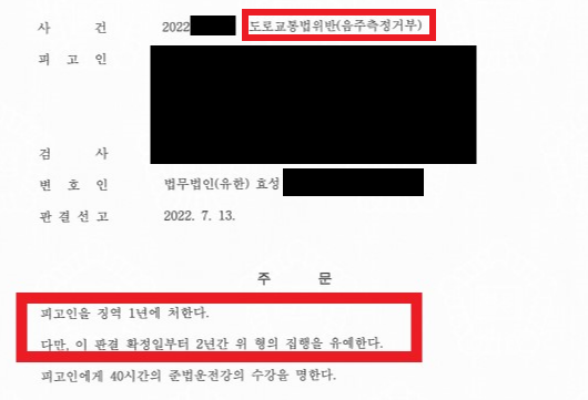 음주운전 3회차 범죄전력 있음에도 음주측정거부에 대하여 집행유예 받았습니다.