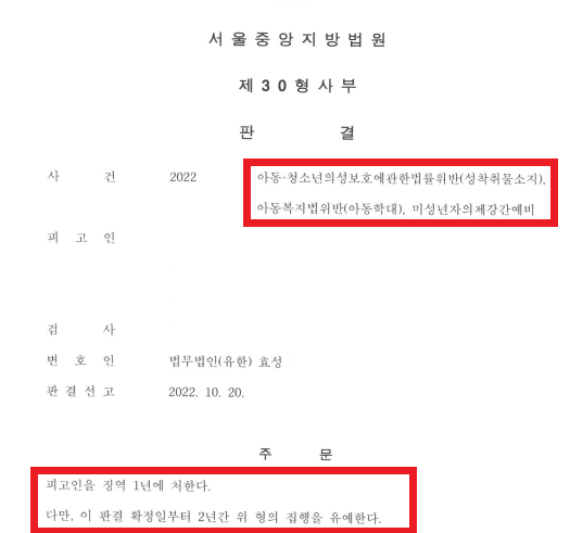 미성년자의제강간예비,성착취물소지,아동학대 집행유예 받았습니다.