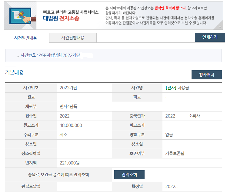 저희 신후 법률사무소가 법원에 답변서를 제출하고 수일이 지나자 B씨는 법원에 소취하서를 제출하였고, A씨 역이 위 소 취하에 동의함으로써 위 대여금 청구소송은 최종적으로 소 취하로 종결되었으며, 본 법률사무소는 법원에 소송비용 확정 및 부담신청을 제출하였습니다.