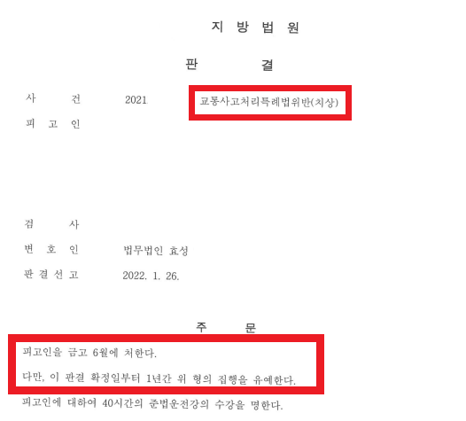 교통사고처리특례법 치상 집행유예 받았습니다.
