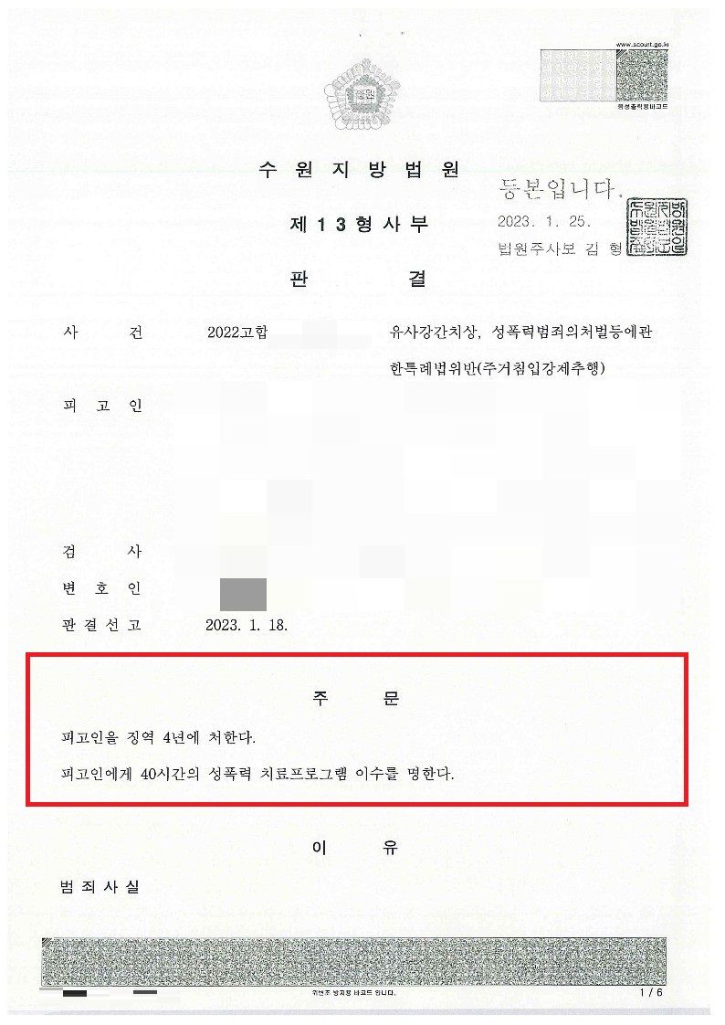 가해자는 유사강간죄 등으로 7년의 실형이 선고되었습니다.