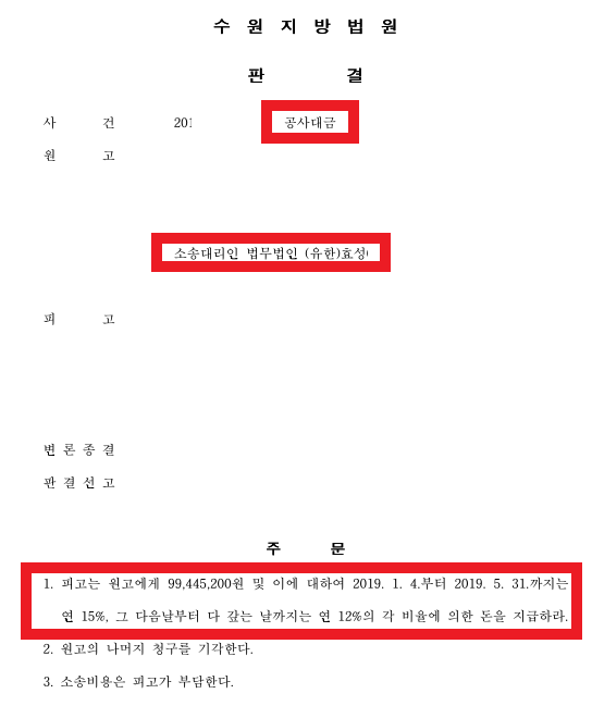 공사대금 미지급금을 받을수 있는 승소 판결 받았습니다.