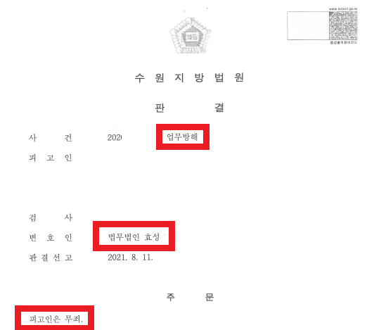 무죄 선고 받았습니다.
