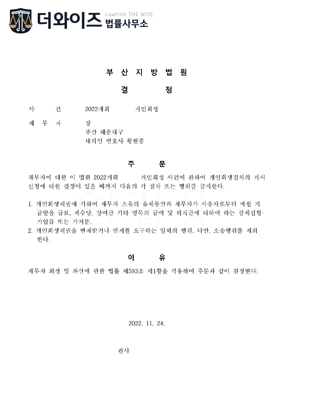 2022. 10. 24. 부산개인회생 금지명령 결정