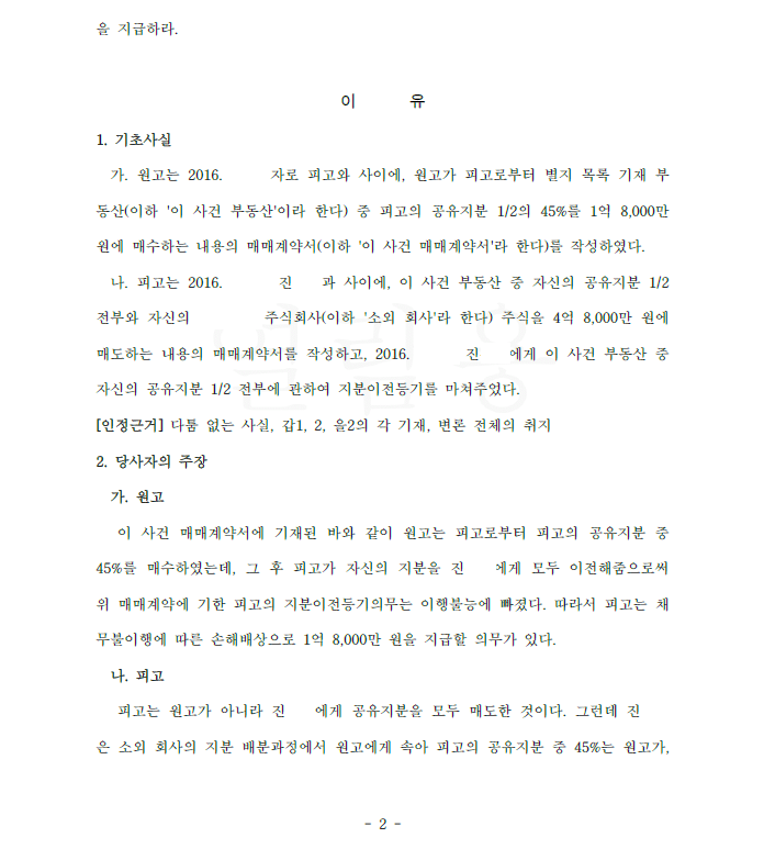 그러나 이 사건의 경우 의뢰인, 제1매수인, 제2매수인 사이에 부동산 뿐 아니라 회사 지분과 관련하여 복잡한 이해관계가 얽혀 있는 경우였는데요.