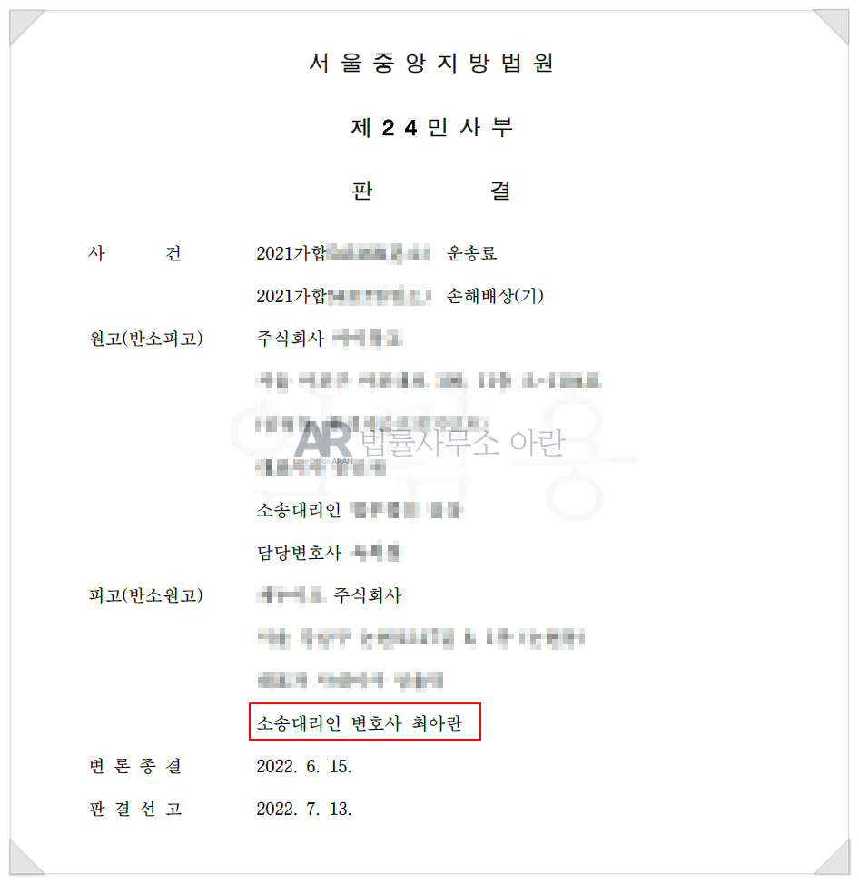 사건명 : (본소) 운송료 , (반소) 손해배상(기)