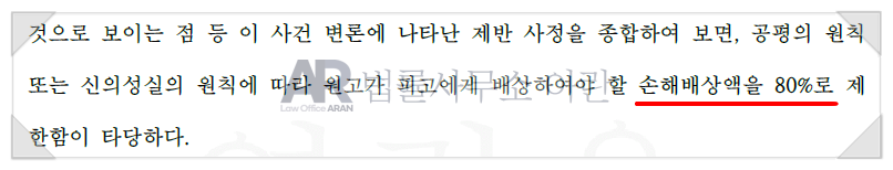 결과 : 손해배상 청구금액 중 80% 승소