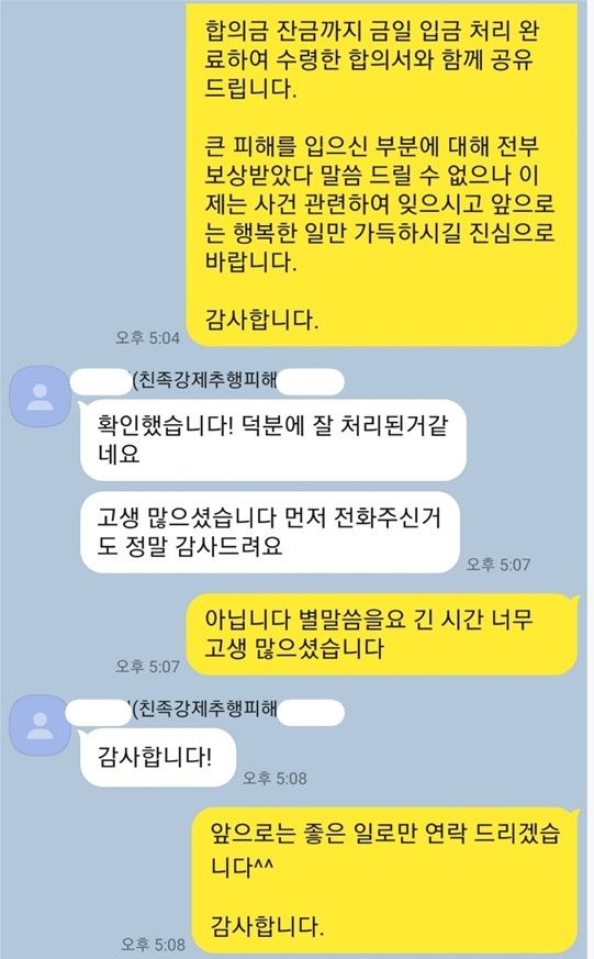 피해자께서도 다행히 이번 합의를 통하여 조금이나마 마음의 상처가 치유되었기를 바라며,