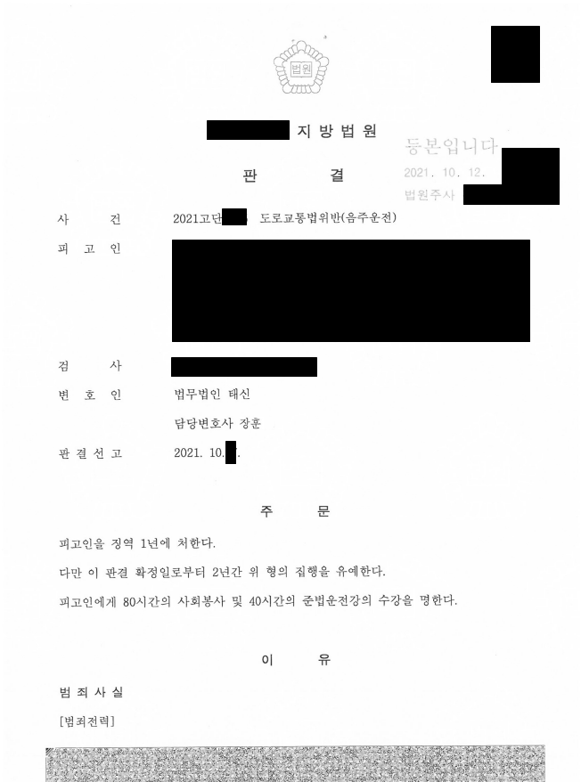 의뢰인은 동종범죄로 이미 처벌받은 전과가 세 차례나 있었고, 음주운전 금지규정 2회이상 위반으로 가중처벌에 해당하여 재판으로의 진행이 불가피한 사건이었습니다. 음주 4~5회차는 구속될 가능성이 농후하므로, 의뢰인은 변호인의 조력을 통해 선처를 받고자 도움을 요청하였습니다.