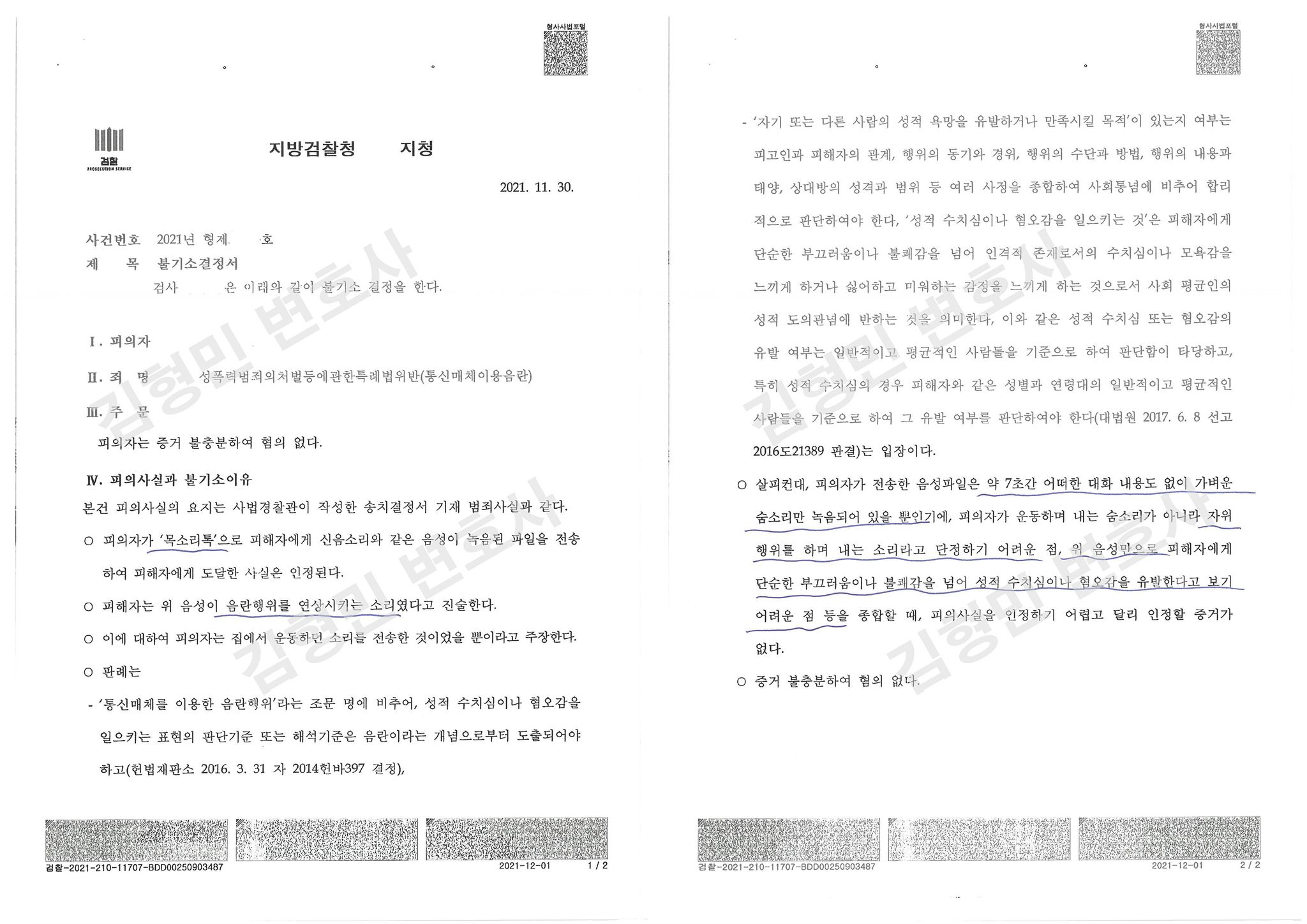 17. 통매음 통신매체이용음란죄 혐의없음 불기소처분