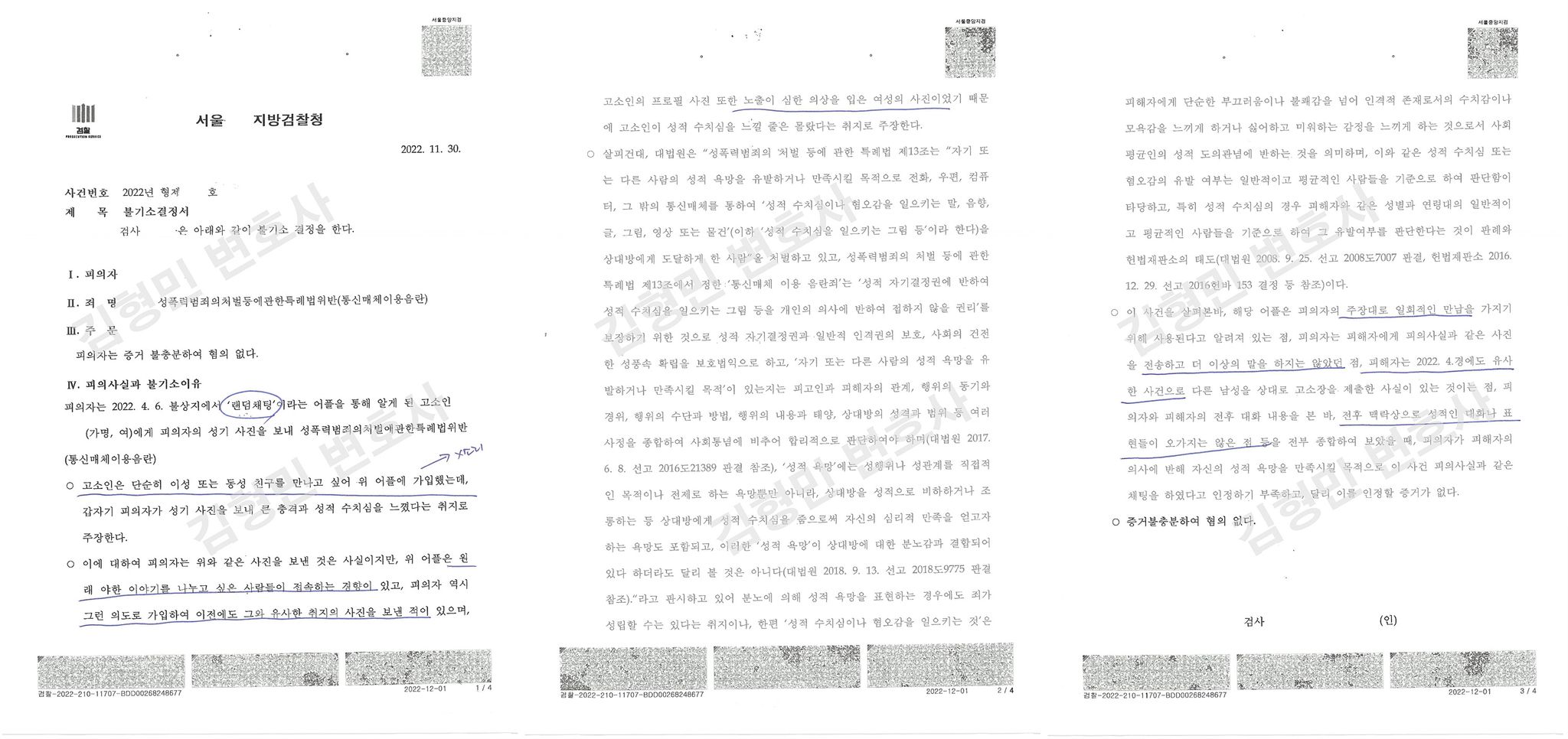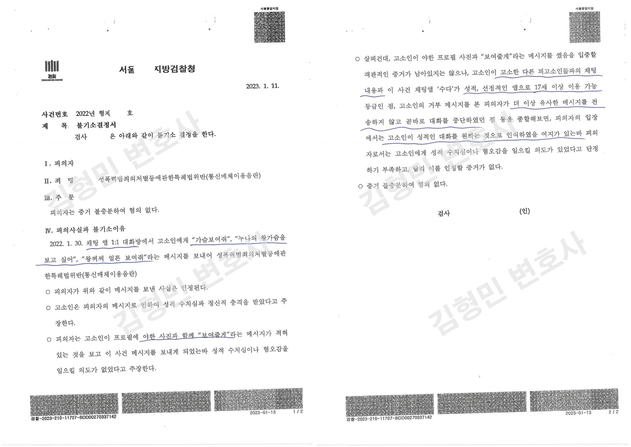 11. 통매음 통신매체이용음란죄 혐의없음 불기소처분