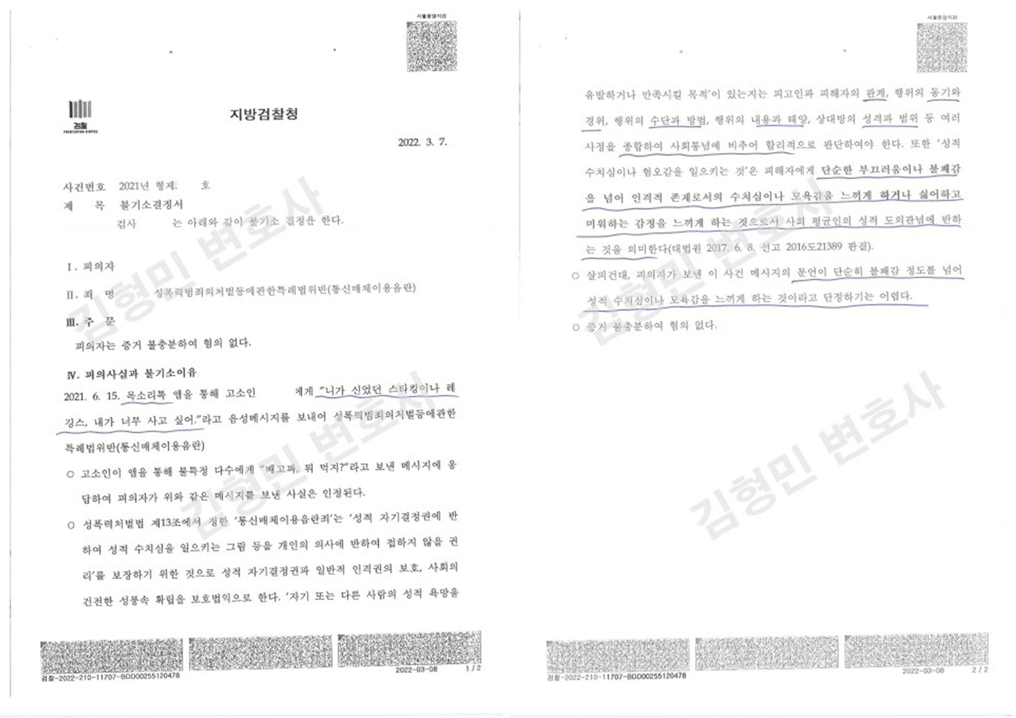1. 통매음 통신매체이용음란죄 혐의없음 불기소처분