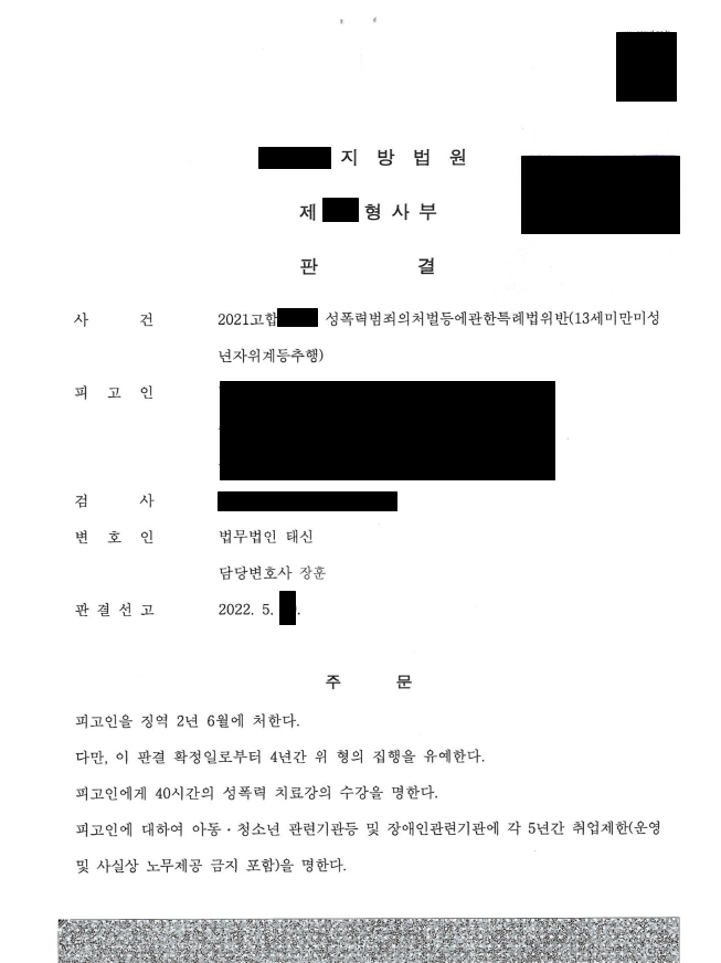 아울러 의뢰인이 전과가 없는 초범인점, 수사초기부터 잘못을 인정한점, 재범방지를 위해 과외교습을 그만두고 또한 피해자와의 접촉을 최대한 피하기 위해 타지역으로 이사를 한점 등을 재판부에 호소하였습니다.