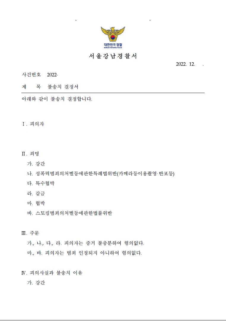 체포 후 의뢰인인 피의자분의 요청으로 새벽1시부터 피의자신문이 바로 진행되었는데, 짧은 시간의 상담을 통해서도 억울한 부분이 충분히 있었기에 무죄를 다퉈볼 사건이었고, 이에 적극적인 경찰 신문 대응은 물론 피의자의 무혐의를 입증할 증거들과 논리적인 주장들을 합하여 상당한 분량의 변호인의견서를 신속하게 제출하였습니다. 이후 2차 피의자신문조사까지 이뤄진 사안이었지만 결국 모든 성범죄와 기타 범죄에 대하여 무혐의를 받을 수 있었습니다.
