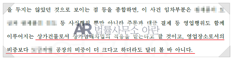 소송전략 : 의뢰인의 공장은 상가건물임대차보호법의 적용대상이다