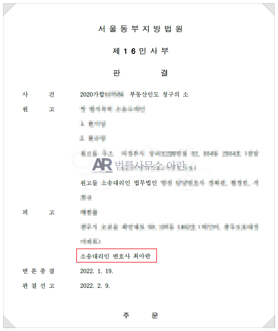 그 결과 재판부는 원고의 청구를 전부 기각하고, 소송비용은 전액 원고가 부담하라는 판결을 선고하였습니다. 즉 의뢰인은 원고에게 위 공장을 인도하지 않아도 된다고 판단한 것입니다.