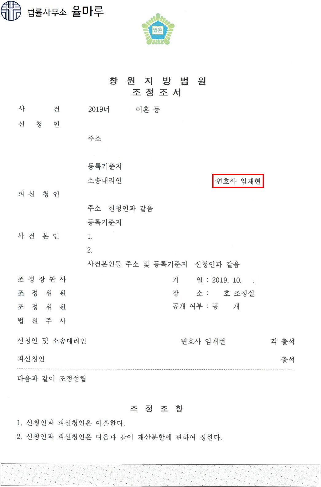 본 변호사는 ‘신속하고 간결하게 이혼과 관련한 절차를 마무리하고 싶다’는 의뢰인 의사를 존중하여 ‘이혼조정신청’으로 진행하기로 했습니다.