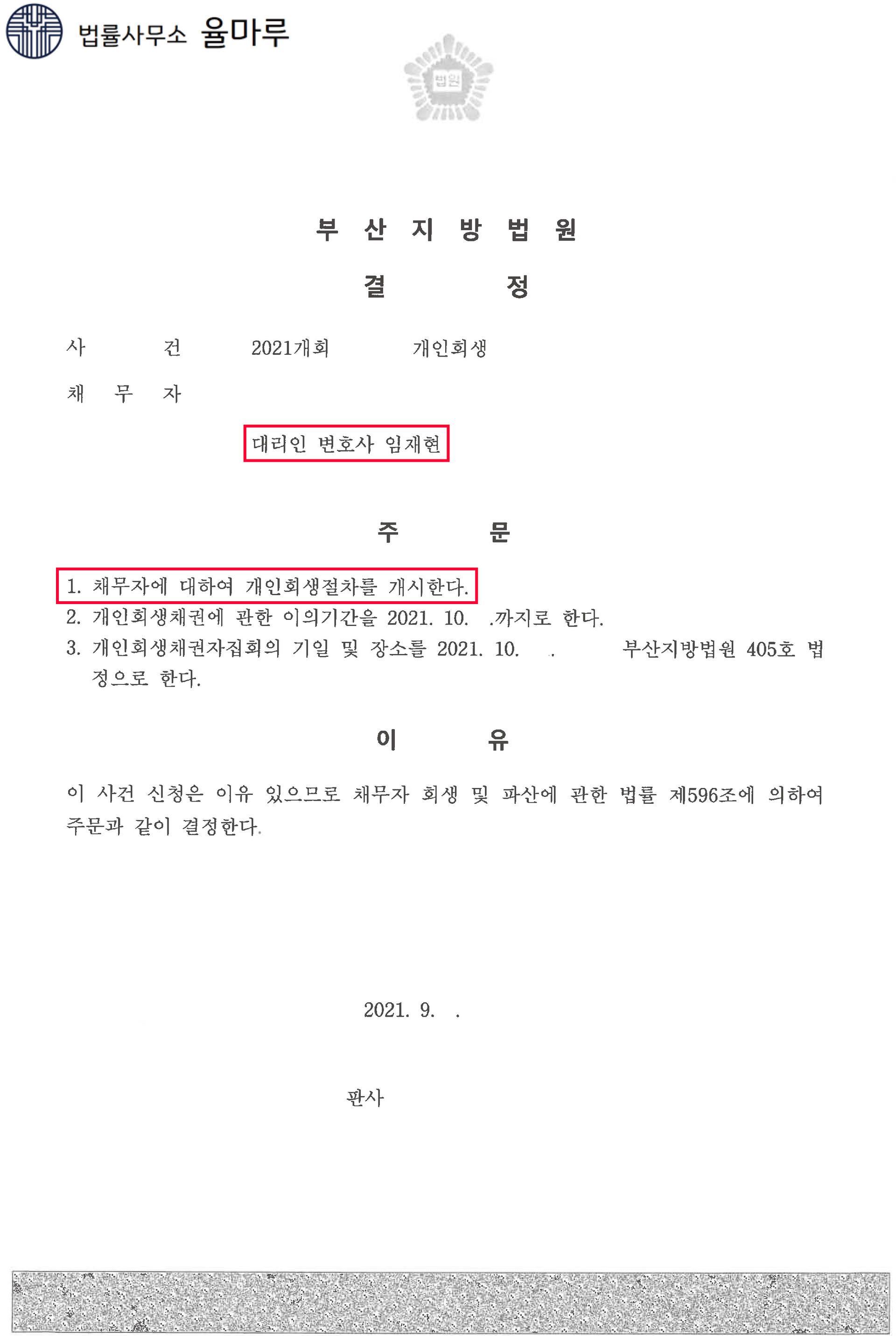 2021. 9.경 법원으로부터 개시결정을 받은 사건입니다.