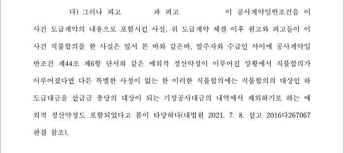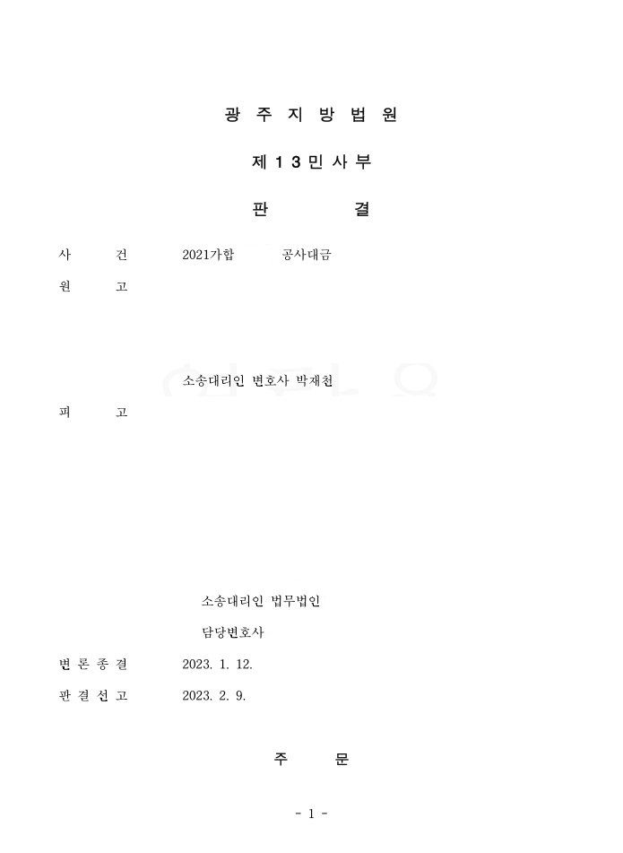 그러나 발주자와 원수급인 사이의 예외적 정산합의 사실을 증명해내어 발주자의 하수급인에 대한 공사대금지급의무가 있다는 사실을 밝혀내어 전부 승소판결을 이끌어 낼 수 있었습니다.