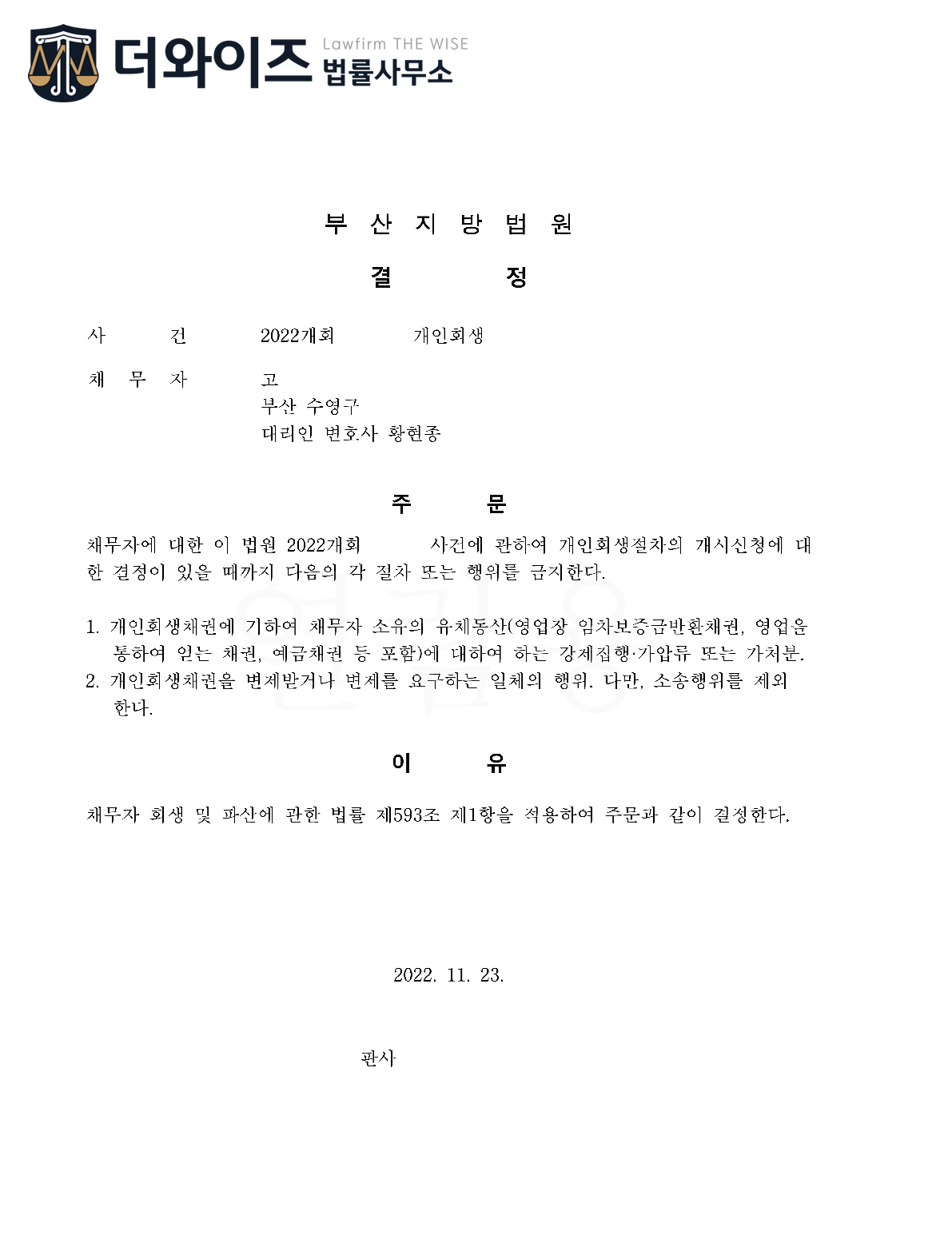2022. 10. 23. 부산개인회생 금지명령 결정