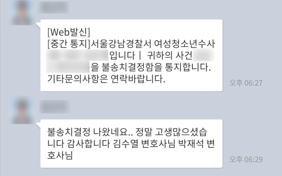 참고로 불송치 결정(혐의없음)이라 하면, 경찰 측에서 혐의가 없다고 판단할 경우, 검찰에 송치하지 않고, 자체적으로 사건을 종결시키는 것을 의미합니다.