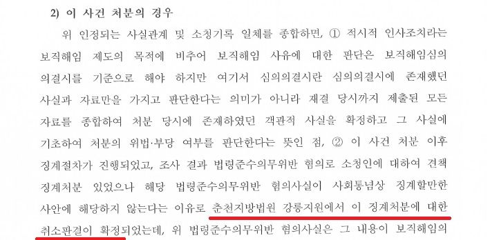 따라서 이제는 보직해임 사유가 존재하지 않음에도 보직해임이 이루어졌다는 실제상의 하자를 주장해서 취소결정을 받아야 하는데요