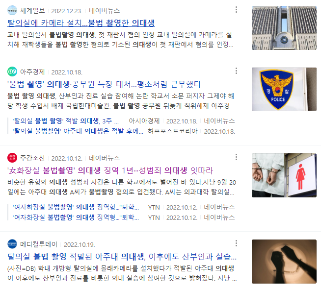 최근에는 의대생이 교내 탈의실에 카메라를 몰래 설치하여
