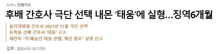 이러한 관례처럼 내려오던 태움의 심각성에