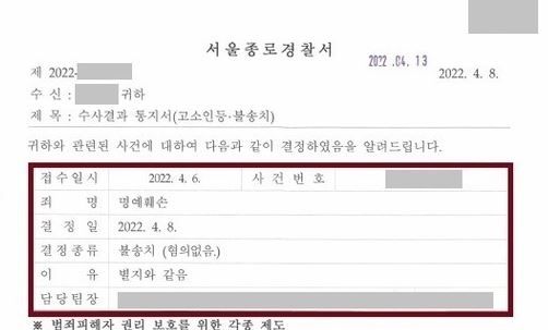 불송치, 혐의없음 받았습니다.