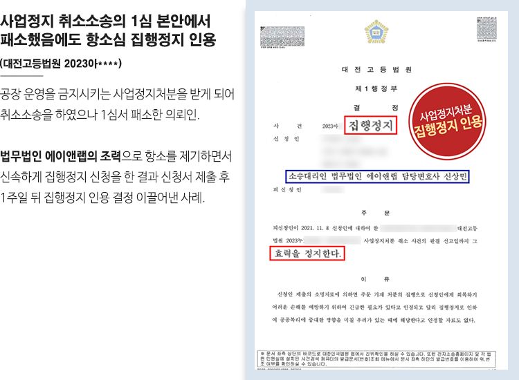 이로써 행정청의 즉시 집행을 방지할 수 있었습니다.