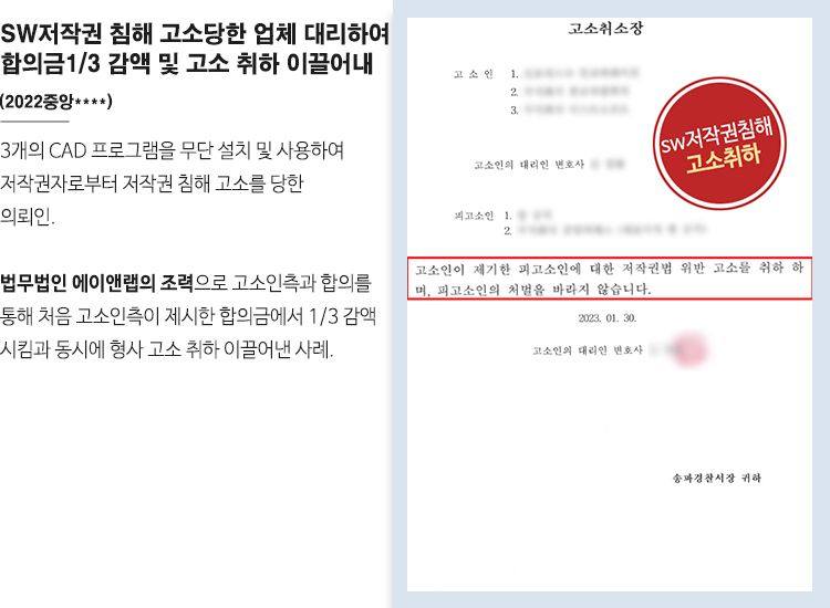 우리 의뢰인(피고소인)은 주식회사 대표로 회사 사무실 및 다른 장소에서 3개의 CAD 프로그램을 무단 설치 및 사용하여 각 저작권자로부터 저작권 침해 고소를 당하였습니다.