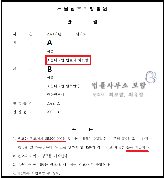 결국 법원은 최보람, 최유정 변호사의 주장을 적극 반영하여 B가 A에게 다액의 손해배상금을 지급하라는 판결을 내렸습니다.