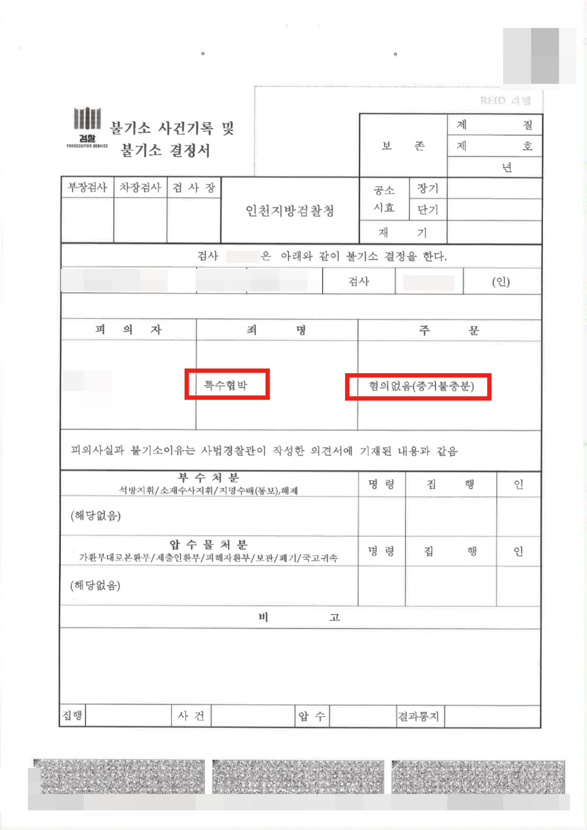 그 결과 의뢰인은 무혐의 처분을 받게 되었습니다.