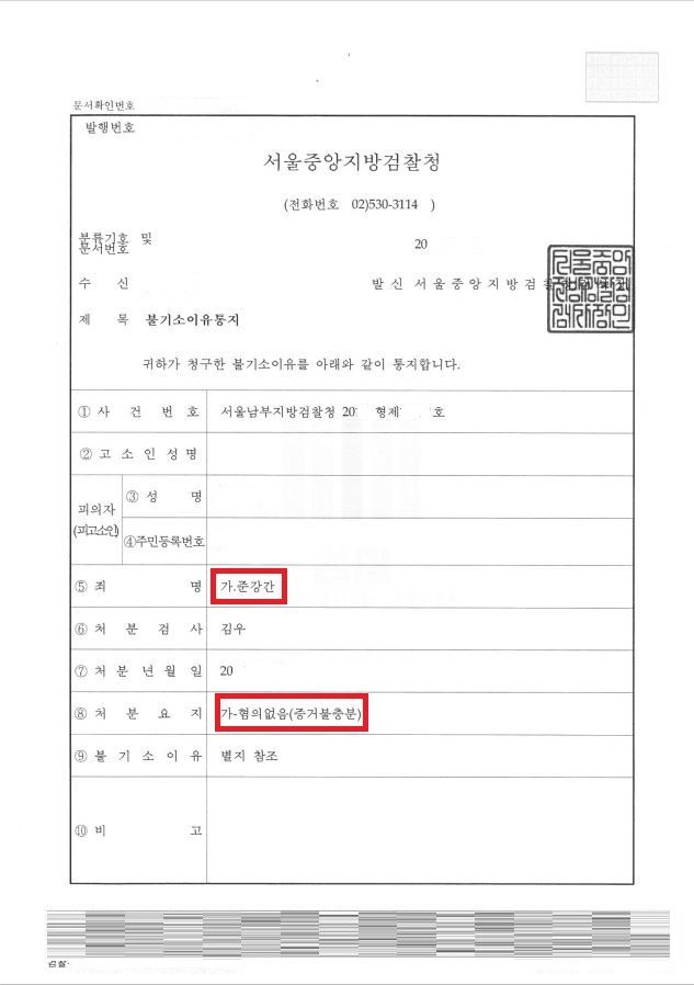 수사기관은 오랜 보완 수사 결과, 의뢰인 진술의 신빙성과 증거관계에 대한 본 변호인의 변론 및 의견서를 그대로 수긍하였고, 이에 의뢰인에 대한 준강간 혐의 사건에 대해 혐의없음 처분을 하였습니다.