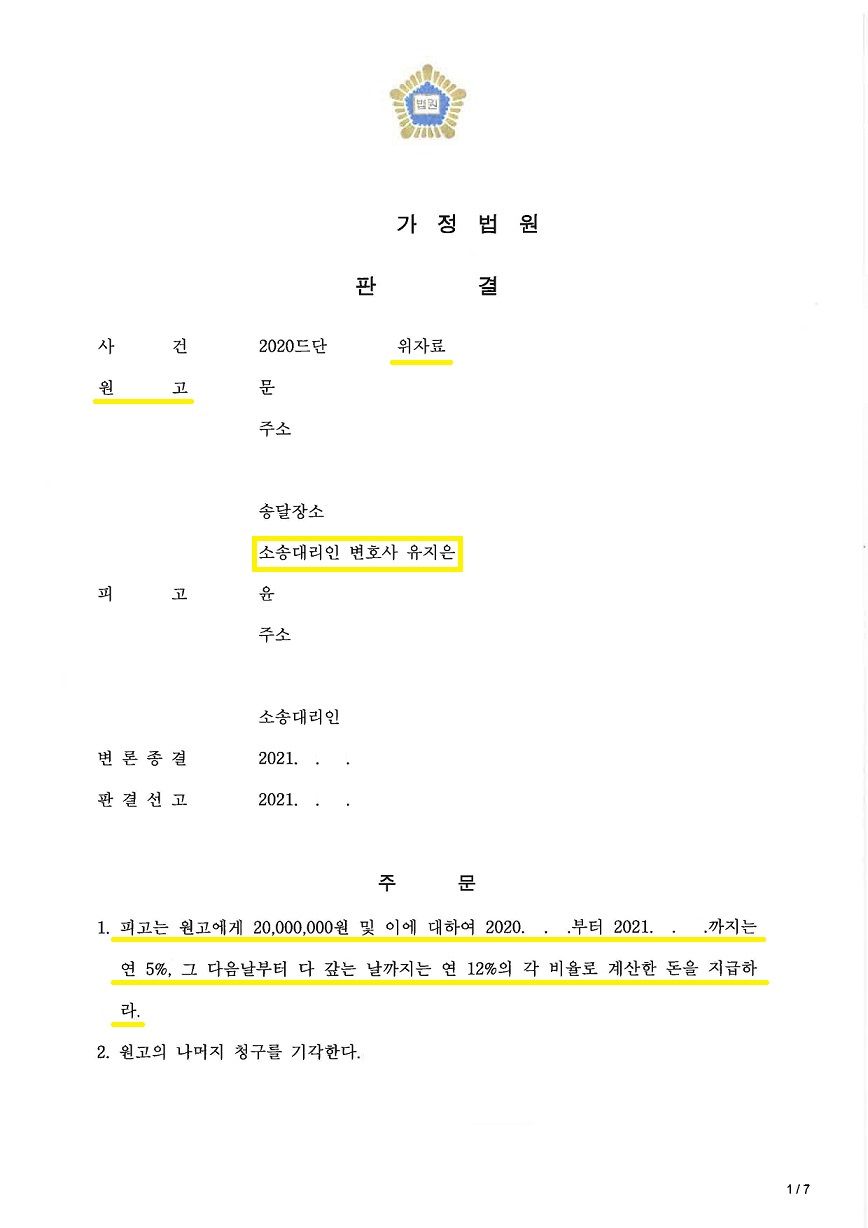 통상적으로 배우자를 피고에 포함하지 않고, 상간자만 상대로 위자료 청구를 할 경우 1천만 원에서 1,500만 원 상당의 위자료 액수가 나오는데, 이 사건에서는 위자료로 2천만 원을 지급받으며 성공적으로 마무리가 된 사안입니다.